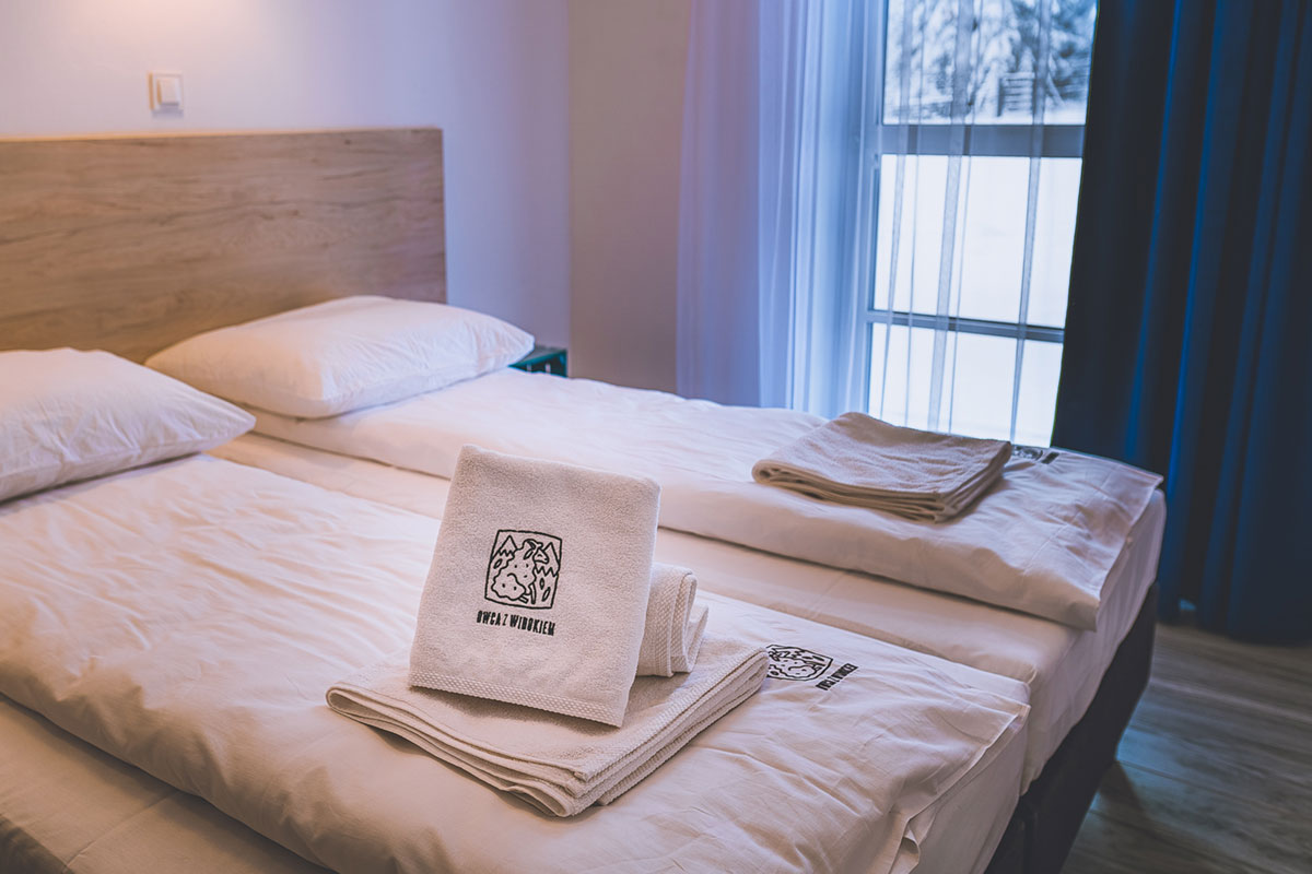 W Owcy znajdziecie 4 przestronne apartamenty, 6 pokoi 4-osobowych oraz 4 pokoje 2-osobowe. Każdy ma swoją własną łazienkę, zapewniamy ręczniki, suszarki, kosmetyki łazienkowe oraz śmigające wi-fi. Na Wasz sprzęt znajdzie się miejsce w szopce zamykanej na kłódkę z kodem.